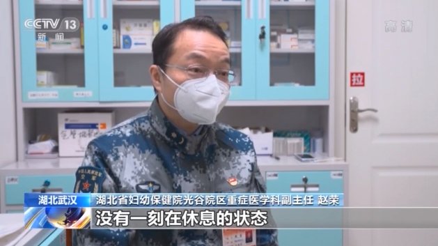 湖北省婦幼保健院光谷院區(qū)重癥醫(yī)學(xué)科副主任 趙榮:他隨時都有可能處在一種搶救狀態(tài),一個班4個醫(yī)生6個護士,甚至要6個護士進紅區(qū),大家從進來到出去沒有一刻在休息。