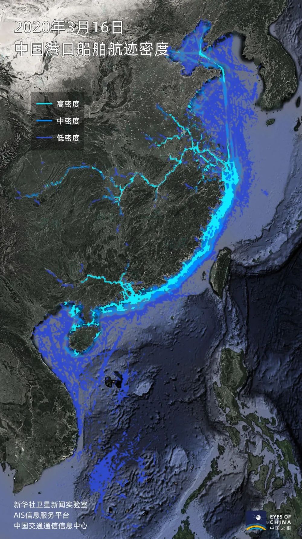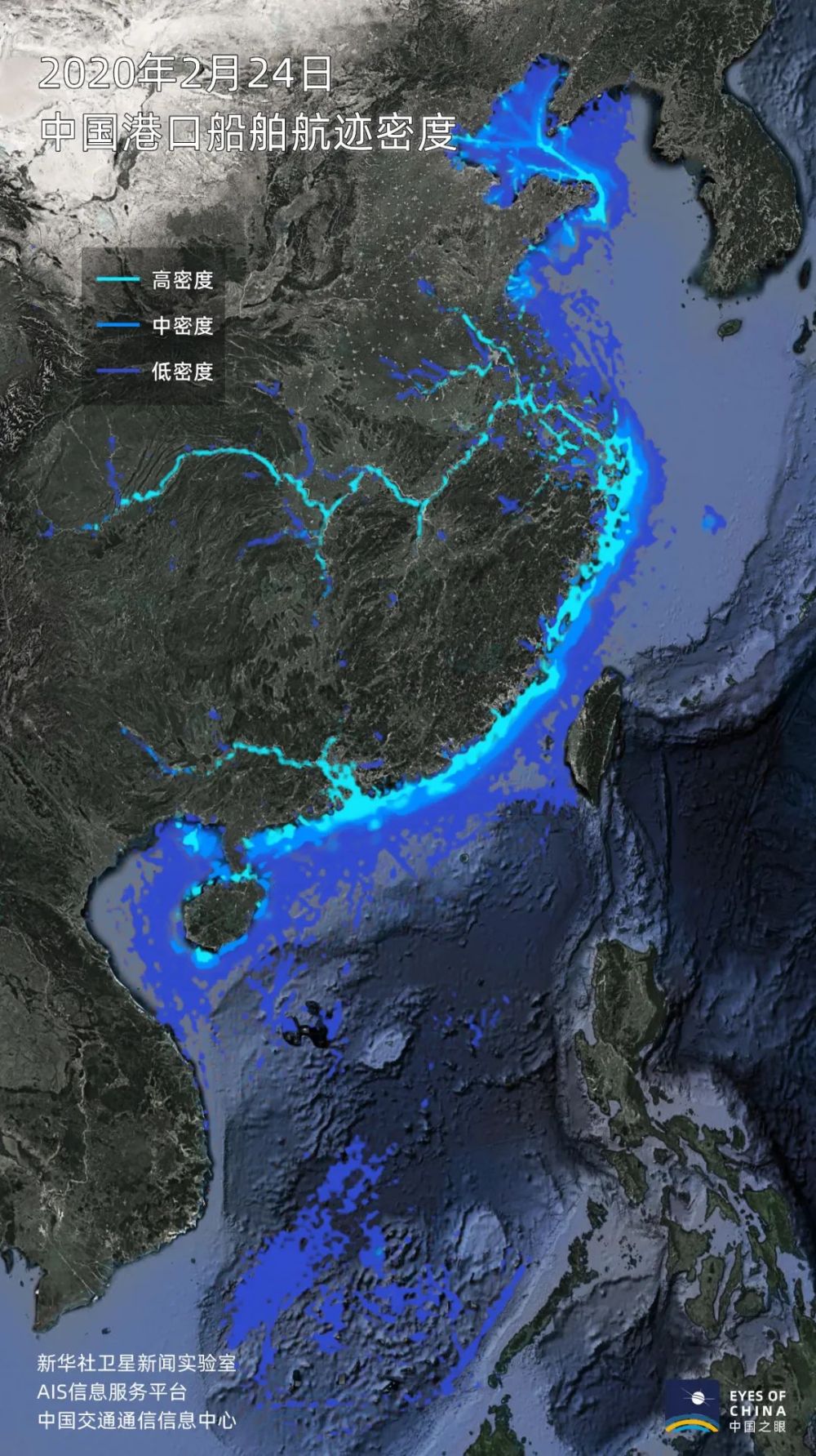 根據(jù)通信衛(wèi)星等方式獲得的船舶信息,中國沿海及內(nèi)河的船舶活躍度正在快速提升。