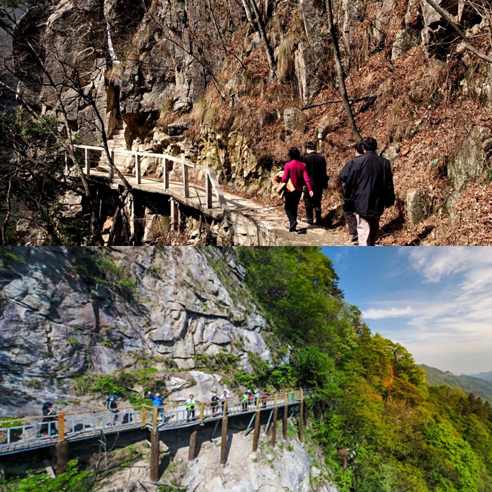?。ㄉ蠄D:2002年的天堂寨,新華社記者于杰攝;下圖2018年的馬鬃嶺自然保護(hù)區(qū)。新華社記者郭晨攝)