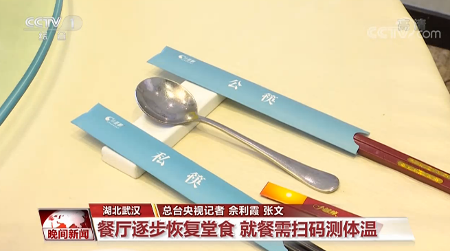 4月26日起,湖北武漢的餐飲業(yè)逐步恢復(fù)堂食,這個假期,各家餐廳的生意好了起來。在一家老字號餐廳,顧客須進行酒精消毒、測體溫、驗證健康碼等環(huán)節(jié)無誤后,方可進入堂食區(qū)域就餐。就餐時,顧客之間不但要保持距離,還需要使用公筷。