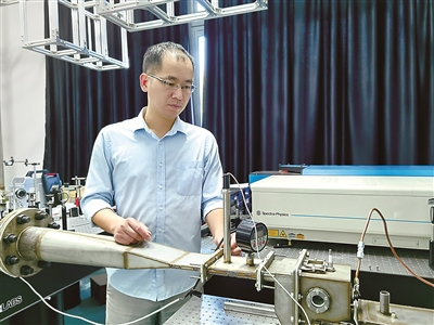 圖為尤延鋮教授在調(diào)試用于發(fā)動(dòng)機(jī)燃燒室光學(xué)測(cè)量的激光測(cè)試儀器。(廈門大學(xué)供圖)