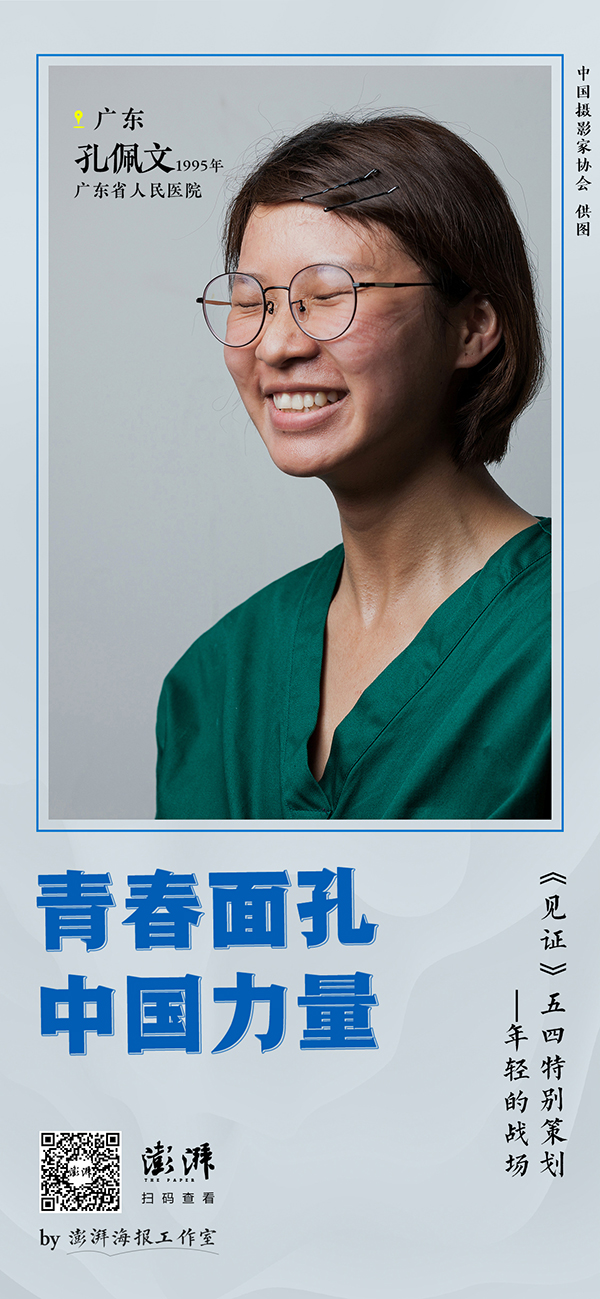 青春由磨礪而出彩,人生因奮斗而升華。在此次抗擊新冠肺炎疫情的戰(zhàn)役中,有1.2萬(wàn)多名90后青年醫(yī)護(hù)人員義無(wú)反顧踏上援鄂戰(zhàn)場(chǎng)。在五四青年節(jié)到來(lái)之際,澎湃新聞從中國(guó)攝影家協(xié)會(huì)主席李舸帶領(lǐng)團(tuán)隊(duì)為支援湖北的4.2萬(wàn)多名醫(yī)護(hù)人員拍攝的《見(jiàn)證》國(guó)家影像文獻(xiàn)檔案中,特別呈現(xiàn)30張青春面孔,以展現(xiàn)當(dāng)代中國(guó)青年的擔(dān)當(dāng)精神,見(jiàn)證中國(guó)力量!