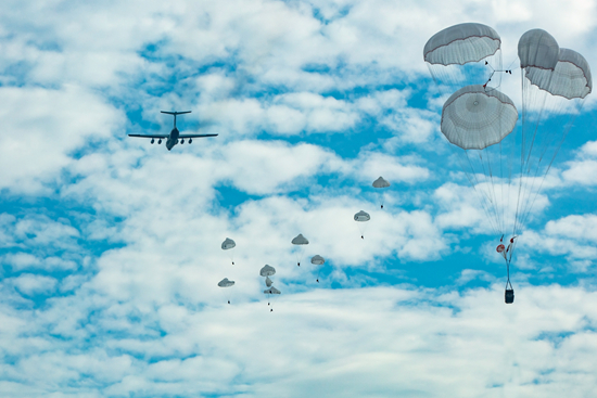2000年8月,空降兵成功進(jìn)行了一次連投30件作戰(zhàn)物資的試驗(yàn),超過國(guó)外一次連投最多22件的紀(jì)錄,這是空降作戰(zhàn)物資實(shí)施快速補(bǔ)給最有效的方法,從此,空降兵有了可靠的“機(jī)動(dòng)式倉庫”。