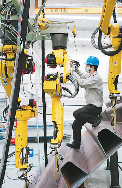 河北唐山國家高新技術(shù)產(chǎn)業(yè)開發(fā)區(qū)內(nèi)工人在調(diào)試智能焊接機械手。新華社記者 楊世堯攝