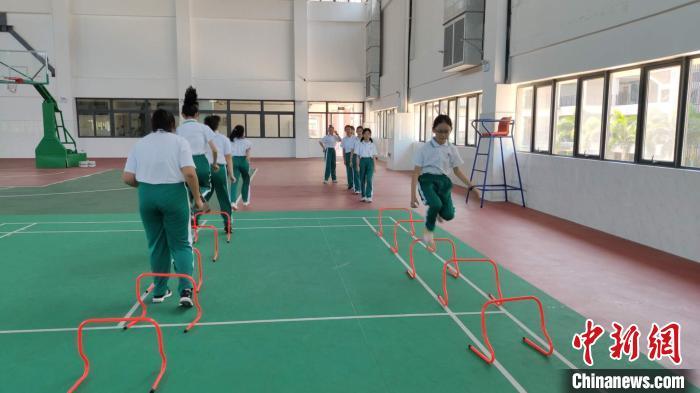 資料圖:海南一學(xué)校學(xué)生在室內(nèi)上體育課?!×质拷?攝