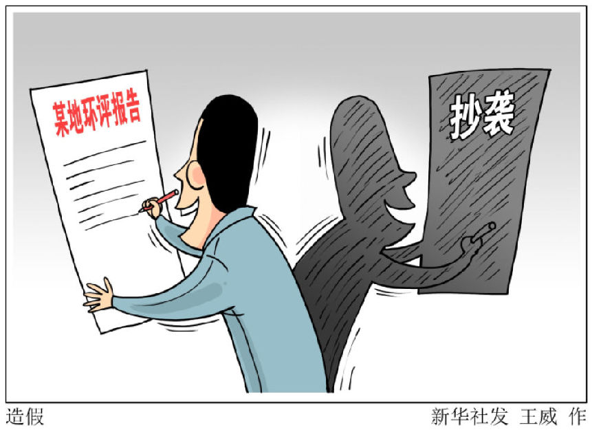 前一段時(shí)間,某地環(huán)評(píng)報(bào)告抄襲“做樣子”引發(fā)關(guān)注。類似情況是個(gè)案,還是有一定普遍性?半月談?dòng)浾咴诙嗟卣{(diào)研發(fā)現(xiàn),當(dāng)前環(huán)評(píng)行業(yè)魚龍混雜,亂象不少。環(huán)評(píng)報(bào)告書有模板,不同項(xiàng)目之間可套用,有的環(huán)評(píng)機(jī)構(gòu)憑過往經(jīng)驗(yàn)推測或主觀臆斷,替換模板中的關(guān)鍵參數(shù)和結(jié)論,一份新的環(huán)評(píng)報(bào)告就出來了。