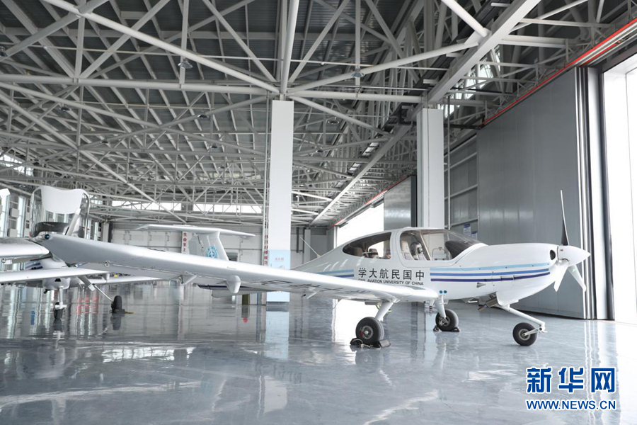 圖為機庫中待飛的單發(fā)DA40D飛機。新華網(wǎng)記者焦鵬 攝