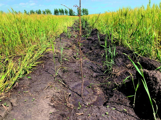 上圖:8月2日,陳巴爾虎旗特尼河林場大片麥田、油菜田,被鏟出一道道黑綠相間的“斑馬線”。中圖:8月2日,陳巴爾虎旗特尼河林場一處被毀的麥田。下圖:8月2日,陳巴爾虎旗特尼河林場一處被毀的麥田里,一些突擊種上的樹苗已經(jīng)枯萎?!”緢?bào)記者王靖攝
