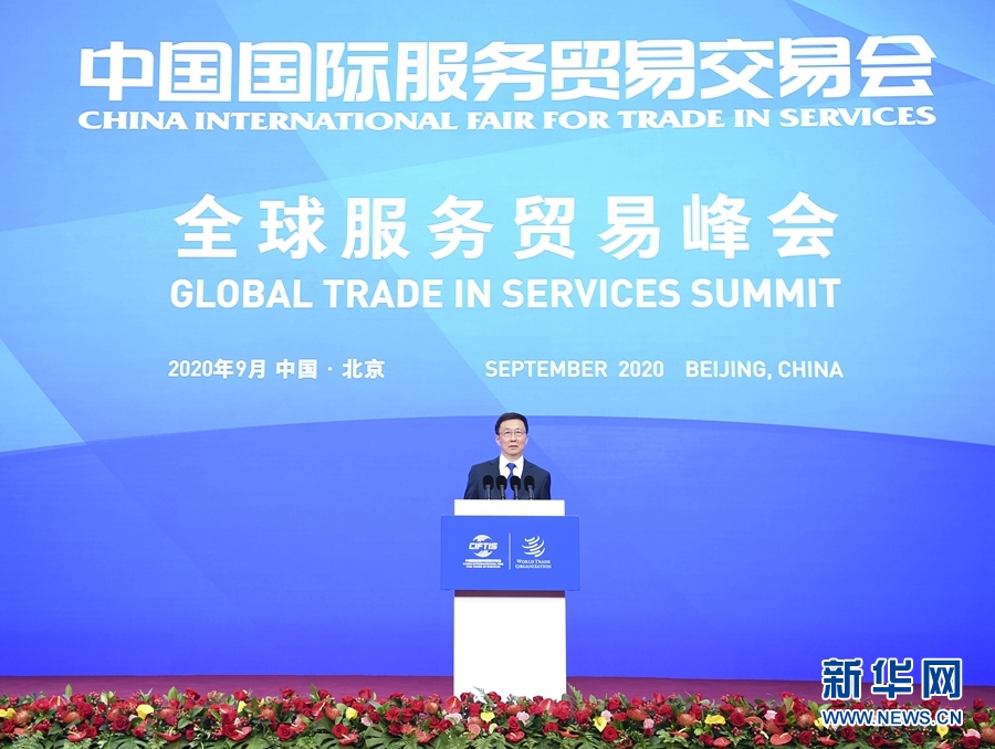 新華社北京9月5日電(記者孫奕、吉寧)中共中央政治局常委、國務院副總理韓正4日在北京出席2020年中國國際服務貿(mào)易交易會全球服務貿(mào)易峰會并宣布服貿(mào)會開幕。
