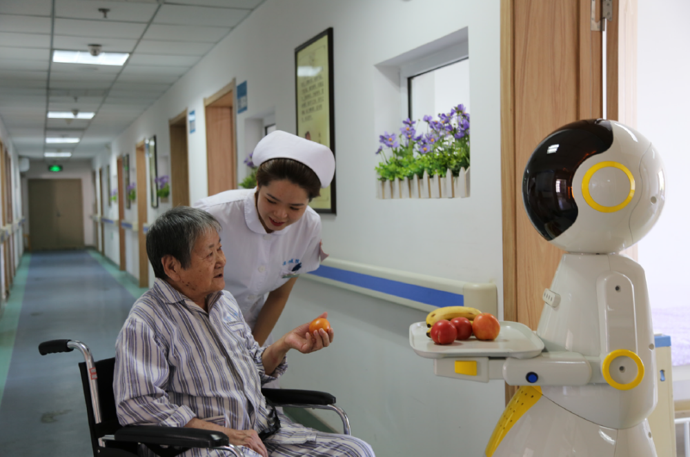 情感陪護(hù)機(jī)器人服務(wù)老年患者。(沈陽安寧醫(yī)院供圖)