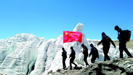 “你在高山之巔,背靠著信念,自己也成了靠山。你在世界之巔,與冰雪為伴,時(shí)空也有了溫暖。愛國(guó)使命,融進(jìn)你的血脈,刻成了信念,也托起了藍(lán)藍(lán)的天?!保▌⑿〔荩?/p>