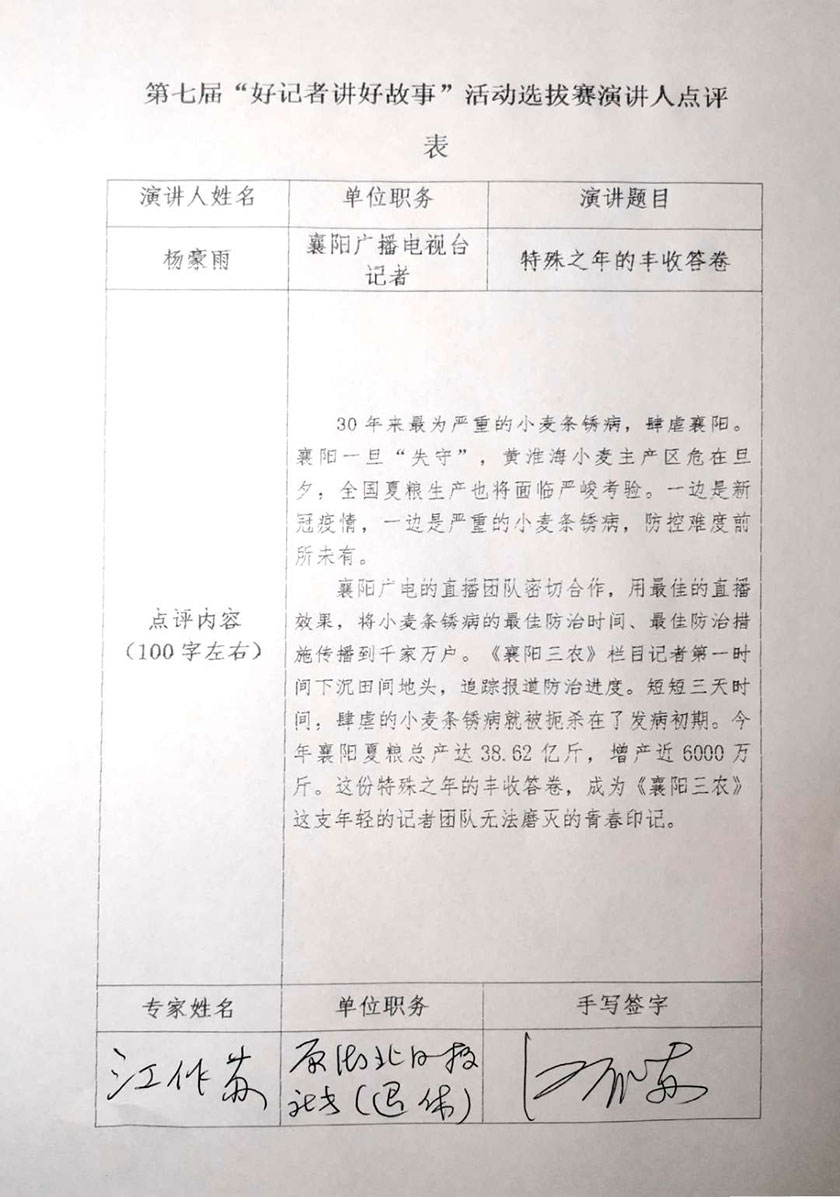 江作蘇點(diǎn)評(píng)楊豪雨《特殊之年的豐收答卷》