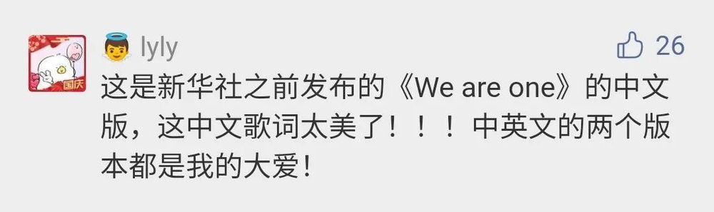 @Monstristing:歌聲有激勵(lì)磅礴的氣勢,又兼具一絲絲的溫柔,吟唱鋪展開星辰大海的浩瀚,真是美妙。聽完感覺元?dú)鉂M滿,祖國母親生日快樂!