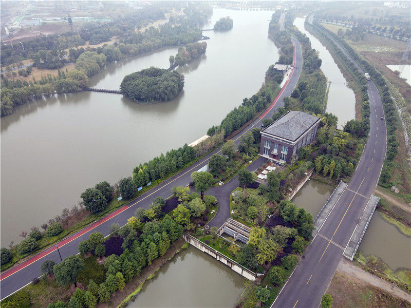 這是10月16日拍攝的安徽省潁上縣沿淮水利生態(tài)景區(qū)——五里湖濕地公園(無人機(jī)照片)。新華社記者 劉軍喜 攝