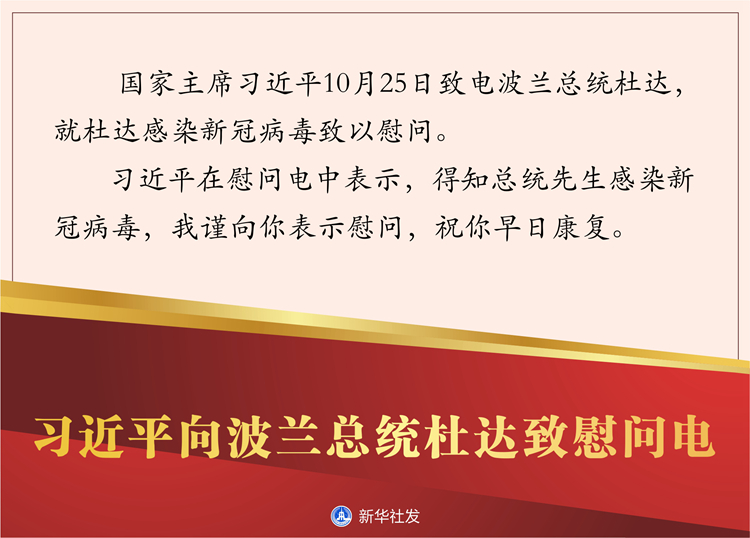 新華社北京10月25日電? 國家主席習近平10月25日致電波蘭總統(tǒng)杜達,就杜達感染新冠病毒致以慰問。