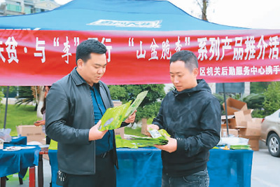 日前,貴州省遵義市匯川區(qū)山盆鎮(zhèn)黨委攜手匯川區(qū)機(jī)關(guān)后勤服務(wù)中心開展“消費(fèi)扶貧”推介活動(dòng),將“山盆脆李”系列產(chǎn)品推向市場(chǎng),果干、果酒的單日銷售額達(dá)一點(diǎn)四萬(wàn)元。周 麗攝(人民視覺)