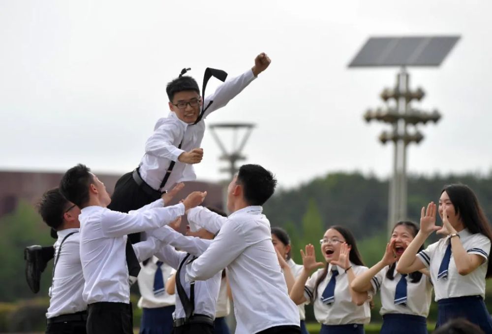 2020年6月10日,在南昌大學校園內(nèi),學子們一起歡呼,拍畢業(yè)照留念。新華社記者 彭昭之 攝