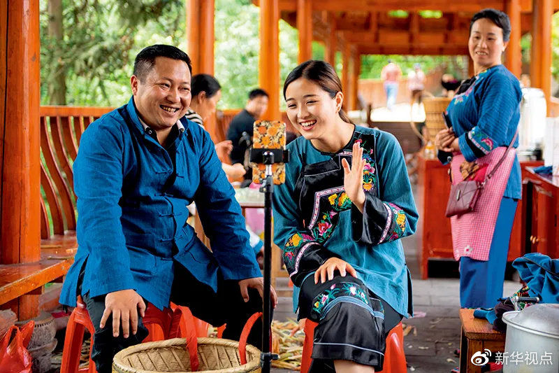 4月23日,在十八洞村拍攝的返鄉(xiāng)創(chuàng)業(yè)做直播帶貨成“網(wǎng)紅”的大學(xué)生施林嬌 新華社記者薛宇舸 攝