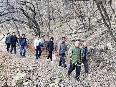 ▲向?qū)儙ьI(lǐng)尋找小組去尋訪黃君玨烈士殉難處。馬亞運攝。