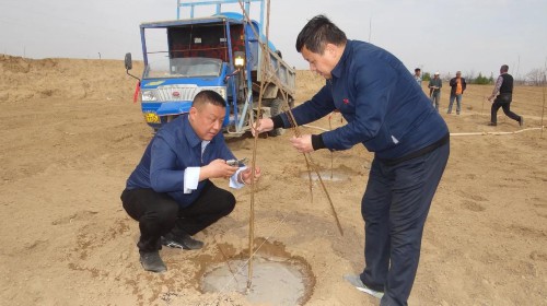 在離高家圪圖不遠(yuǎn)處、210國道旁的馬家店村委會里,大禹街道辦副主任高艷和馬家店村黨支部書記郝崗,對惠濤的故事如數(shù)家珍。為了讓村民富裕起來,惠濤爭取資金,為馬家店村發(fā)展桃樹、李子、櫻桃等采摘園產(chǎn)業(yè)?!皬漠a(chǎn)業(yè)規(guī)劃、選址、平整土地、打坑、栽樹、施肥、澆水……他都親自參與,和村民一同勞動,就和家人一樣親近?!备咂G介紹說。樹苗栽好后,惠濤每半個月就得上山一次,查看情況。今年7月,因下雨路滑,車輛無法上山,大家都勸他等天晴了再去,可他堅(jiān)持要徒步上山?!耙?yàn)槁坊菘h長摔了一跤,當(dāng)時我們村民都很心疼”。郝崗不好意思地說道。也就是這一次,惠濤發(fā)現(xiàn)山上水電問題刻不容緩,兩三天后便協(xié)調(diào)縣政府解決了困擾村民的難題。