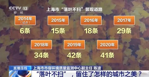 陳波:上海是一個(gè)人文之城,是一個(gè)海納百川的城市,我們希望這些景致能有一些代表性。但也不是每一條道路都適合開展“落葉不掃”,因?yàn)槔锩孢€有考慮到交通通行情況,包括有些路段可能在一段時(shí)間會(huì)有一些施工等等,肯定不適宜開展“落葉不掃”。