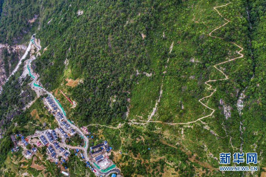 四川涼山彝族自治州布拖縣阿布洛哈村通村公路、新村集中安置點和原來出村的羊腸小道(6月29日攝)。新華社記者 江宏景 攝