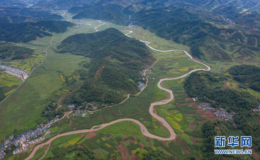 金陽縣熱柯覺鄉(xiāng)丙乙底村境內(nèi)蜿蜒盤旋的旅游道路(6月5日攝,無人機照片)。新華社記者 江宏景 攝