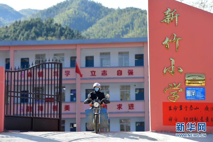 在江西省萬載縣高村鎮(zhèn)新竹村新竹小學(xué),校長羅長石帶著拷貝了當(dāng)日線上教育課程的U盤和新學(xué)期的書本,準(zhǔn)備前往住在山里偏遠(yuǎn)村組的幾位學(xué)生家里(2月17日攝)。新華社記者 彭昭之 攝
