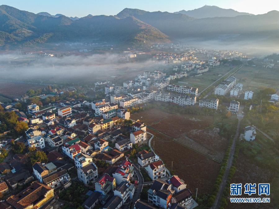 這是11月18日拍攝的沐浴在晨光中的大陳村(無人機(jī)照片)。新華社發(fā)(江漢 攝)