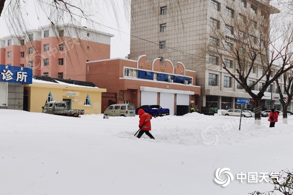 受強降雪影響,內蒙古通遼市市區(qū)積雪深厚。(圖/楊旋)