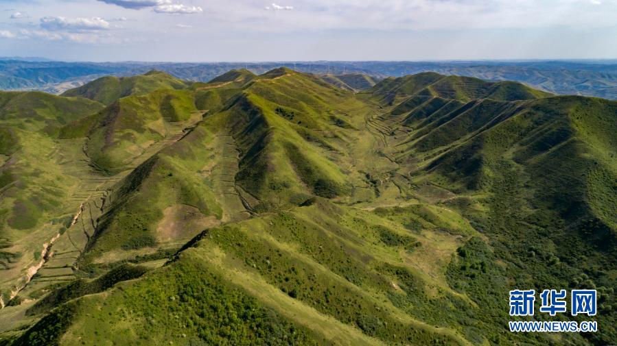 這是6月3日拍攝的被綠色覆蓋的寧夏固原市原州區(qū)馬東山林場(chǎng)(無人機(jī)照片)。新華社記者 王鵬 攝