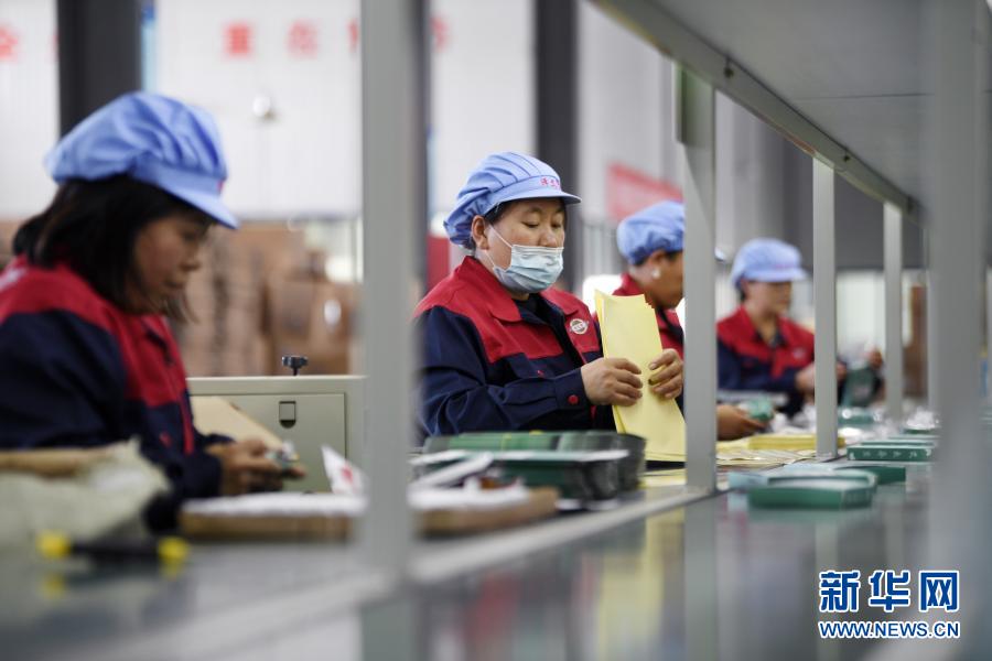 在位于寧夏西吉工業(yè)園區(qū)的寧夏澤艾堂生物科技有限公司,工人在包裝艾草產(chǎn)品(9月17日攝)。新華社記者 王鵬 攝