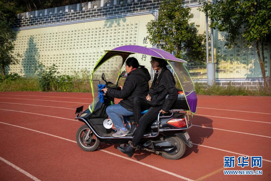 因為腿腳不便,張桂梅(后)坐車從田徑場回教學(xué)樓(11月30日攝)。新華社發(fā)(陳欣波 攝)