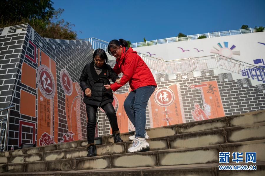 一名老師攙扶張桂梅(左)下臺階(11月30日攝)。新華社發(fā)(陳欣波 攝)