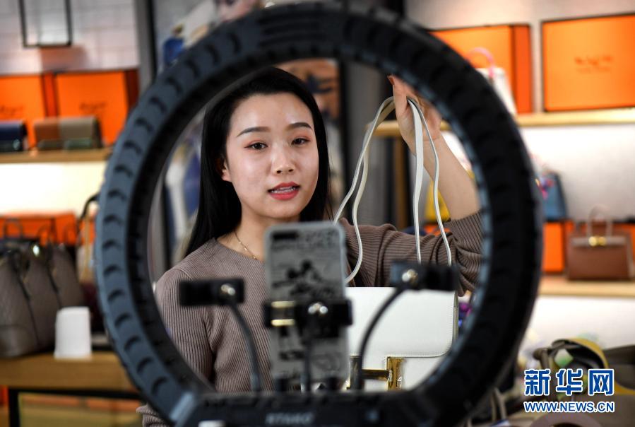 12月11日,河北保定白溝新城一家箱包生產(chǎn)企業(yè)的主播在進(jìn)行產(chǎn)品推介和銷售。新華社記者 王曉 攝
