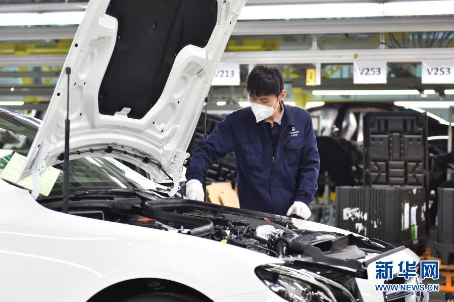 工人在北京奔馳總裝二工廠生產(chǎn)線上作業(yè)(2月21日攝)。新華社記者 陳鐘昊 攝