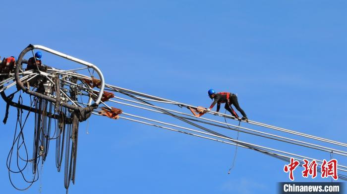施工人員正在開展線上作業(yè)施工?!盍?攝