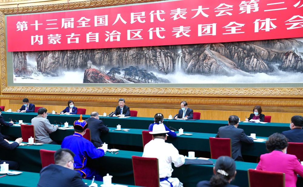 2020年5月22日,習(xí)近平參加十三屆全國(guó)人大三次會(huì)議內(nèi)蒙古代表團(tuán)的審議。新華社記者 黃敬文 攝