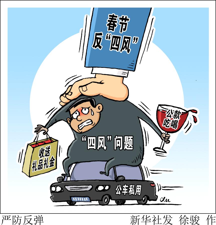 中央紀(jì)委在關(guān)于持之以恒正風(fēng)肅紀(jì)確保2020年元旦春節(jié)風(fēng)清氣正的通知中明確要求,嚴(yán)查享樂(lè)、奢靡問(wèn)題,對(duì)頂風(fēng)違紀(jì)問(wèn)題要深挖細(xì)查、優(yōu)先處置,對(duì)隱形變異問(wèn)題要密切關(guān)注、及時(shí)甄別,對(duì)典型問(wèn)題要深入分析、通報(bào)曝光,做到標(biāo)準(zhǔn)不降、力度不減,堅(jiān)決防止反彈回潮。新華社發(fā) 徐駿 作