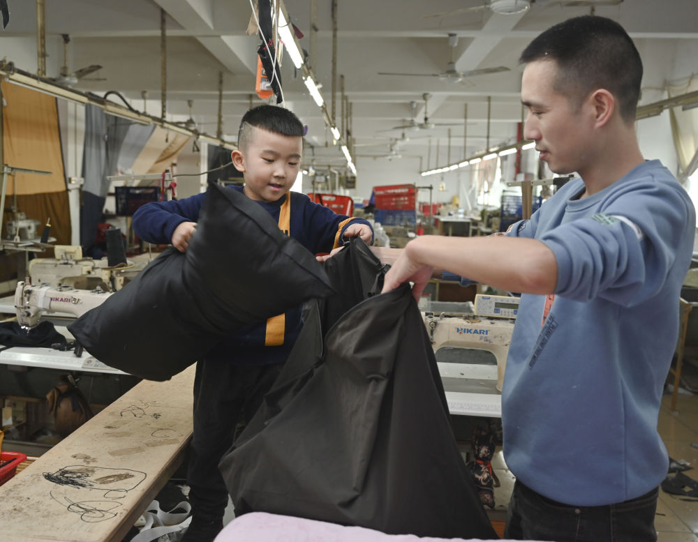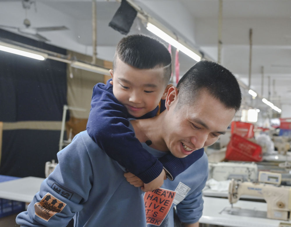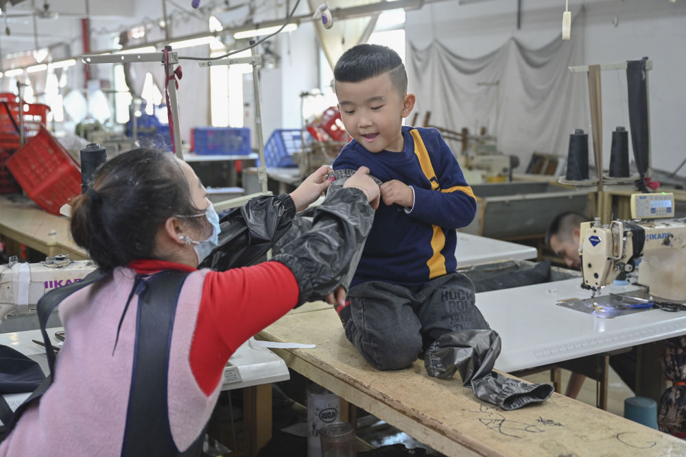 今年春節(jié),黃海龍決定在福建就地過年,這讓5歲的小兒子聰聰高興不已。這是聰聰?shù)谝淮卧诔錾睾桶职謰寢屢黄疬^年。盡管如此,黃海龍還是割舍不下遠(yuǎn)在四川老家的親人,特地為他們做了羽絨服、袖套、枕頭、圍裙等寄回去。