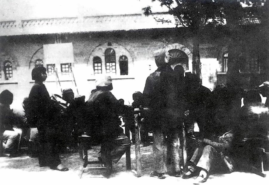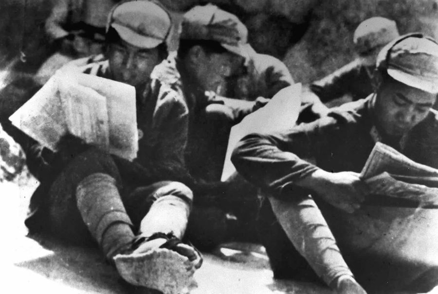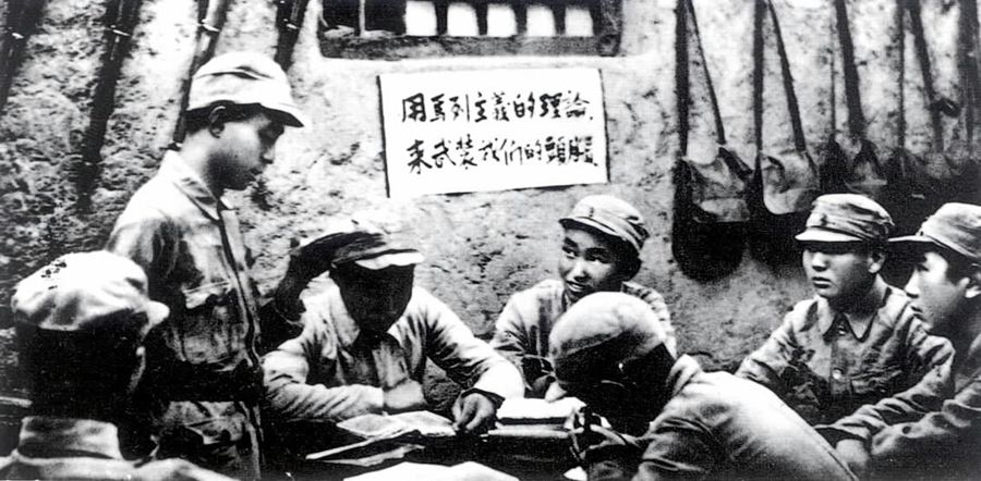 中國(guó)人民抗日軍政大學(xué)的學(xué)員在學(xué)習(xí)整風(fēng)文件。 新華社圖片