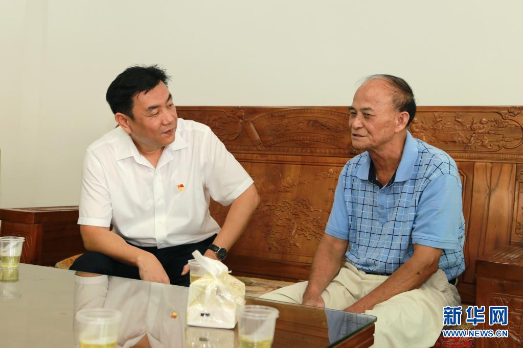 劉光濱(左)到基層慰問(wèn)老黨員(2019年6月28日攝)。新華社發(fā)