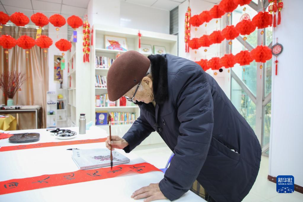 貴陽(yáng)市觀山湖區(qū)金陽(yáng)街道金元社區(qū)書屋內(nèi),一名老人正在練習(xí)書法(2月4日攝)。新華社記者 劉續(xù) 攝