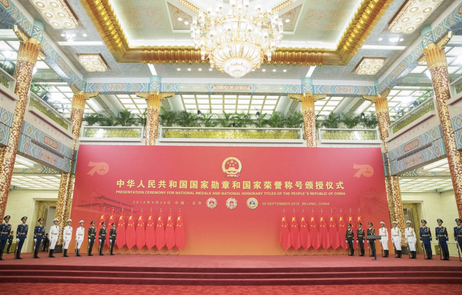 國(guó)家勛章和國(guó)家榮譽(yù)稱號(hào)頒授儀式29日上午在北京人民大會(huì)堂金色大廳隆重舉行。