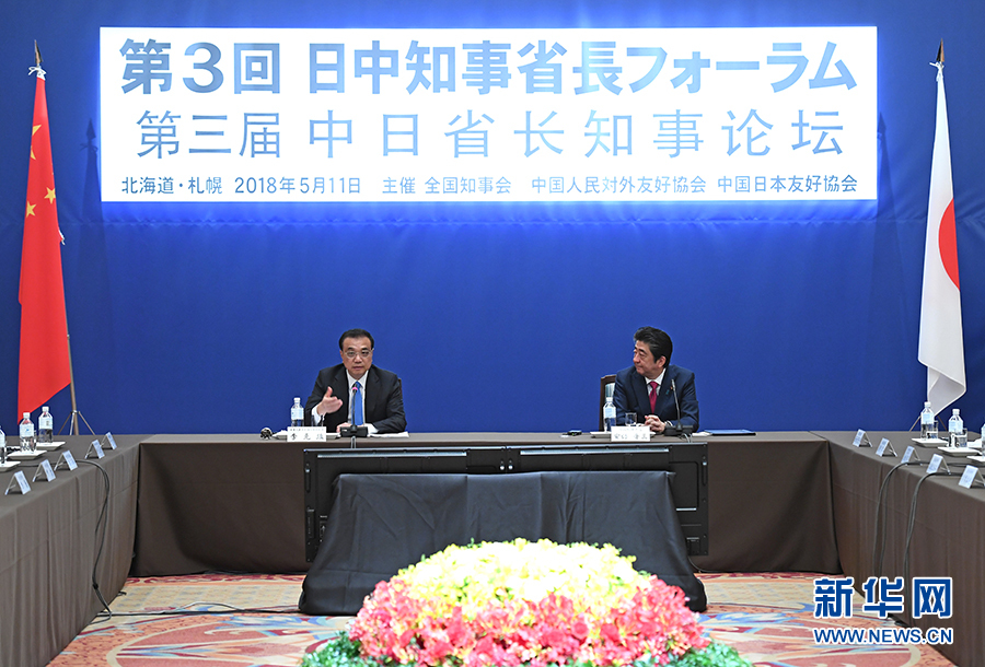 當(dāng)?shù)貢r(shí)間5月11日上午,國(guó)務(wù)院總理李克強(qiáng)在北海道札幌下榻飯店出席中日省長(zhǎng)知事論壇開(kāi)幕式并致辭。日本首相安倍晉三出席。 新華社記者 張領(lǐng)攝