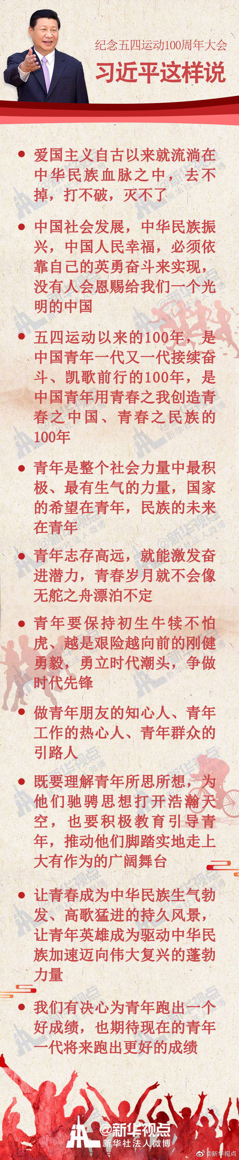 紀(jì)念五四運(yùn)動(dòng)100周年大會(huì)今天上午在北京人民大會(huì)堂隆重舉行,中共中央總書記、國(guó)家主席、中央軍委主席習(xí)近平出席大會(huì)并發(fā)表重要講話。戳圖看金句↓ ????