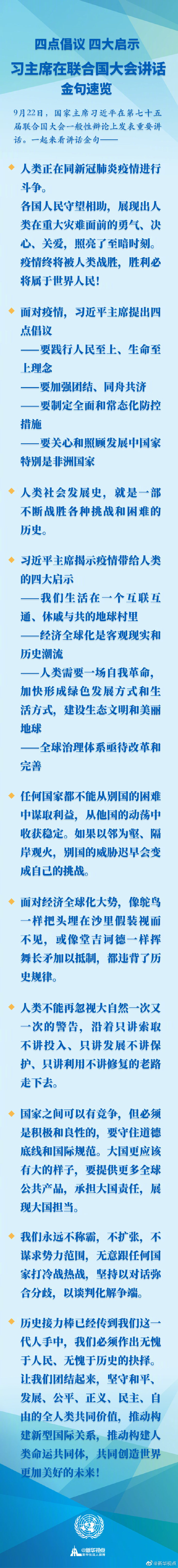 四點(diǎn)倡議 四大啟示 習(xí)主席在聯(lián)合國大會講話金句速覽