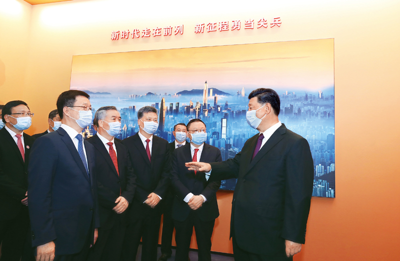2020年10月14日,深圳經(jīng)濟(jì)特區(qū)建立40周年慶祝大會(huì)在廣東省深圳市隆重舉行。中共中央總書記、國(guó)家主席、中央軍委主席習(xí)近平在會(huì)上發(fā)表重要講話。這是當(dāng)天上午,習(xí)近平等參觀“從先行先試到先行示范——慶祝深圳經(jīng)濟(jì)特區(qū)建立40周年展覽”。 新華社記者 鞠鵬/攝