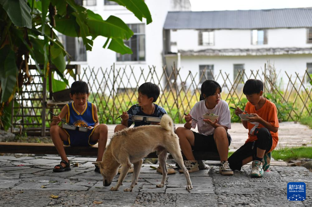 8月24日,大元社的孩子们在吃晚饭。