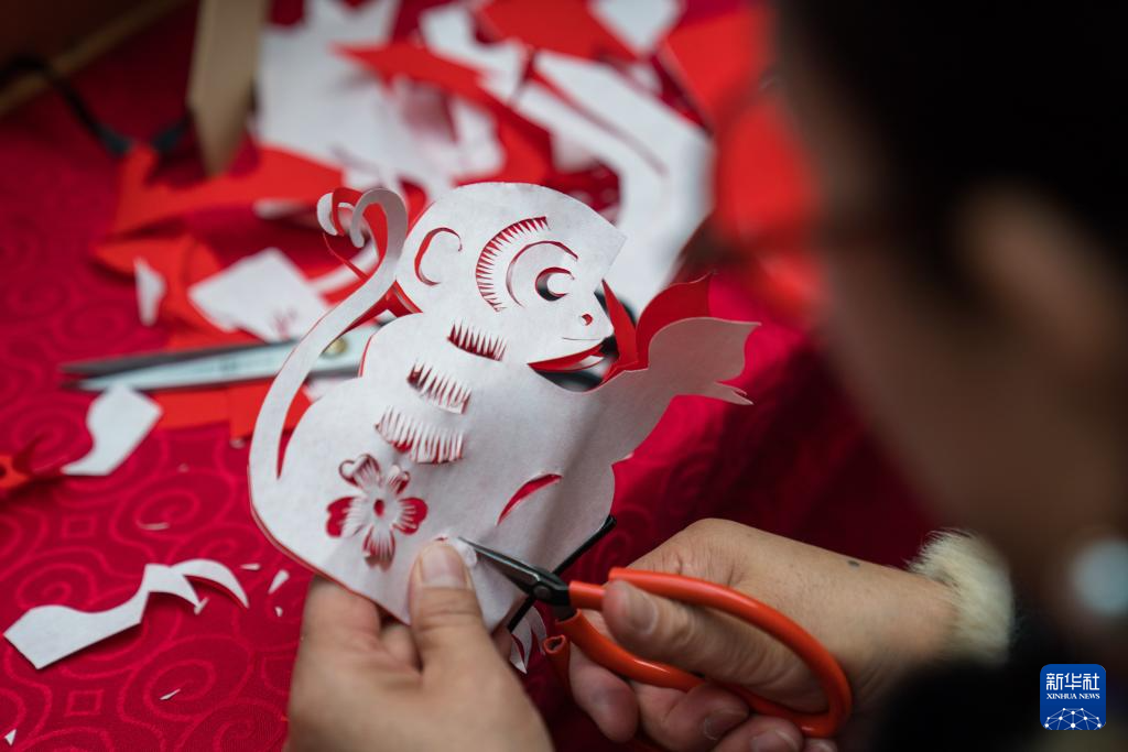 12月26日,在昆明市博物馆,非遗剪纸传承人段云丽表演生肖剪纸。